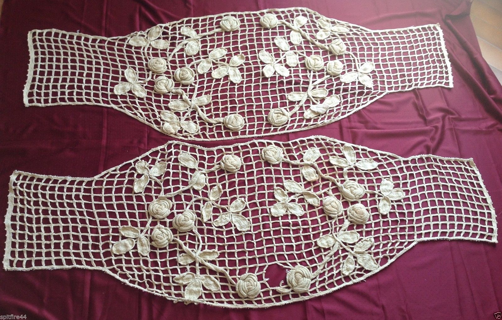 http://tinyurl.com/k5csabk ANCIEN DESSUS DE FAUTEUIL OU DE MEUBLE CROCHETE MAIN MOTIF DE ROSES