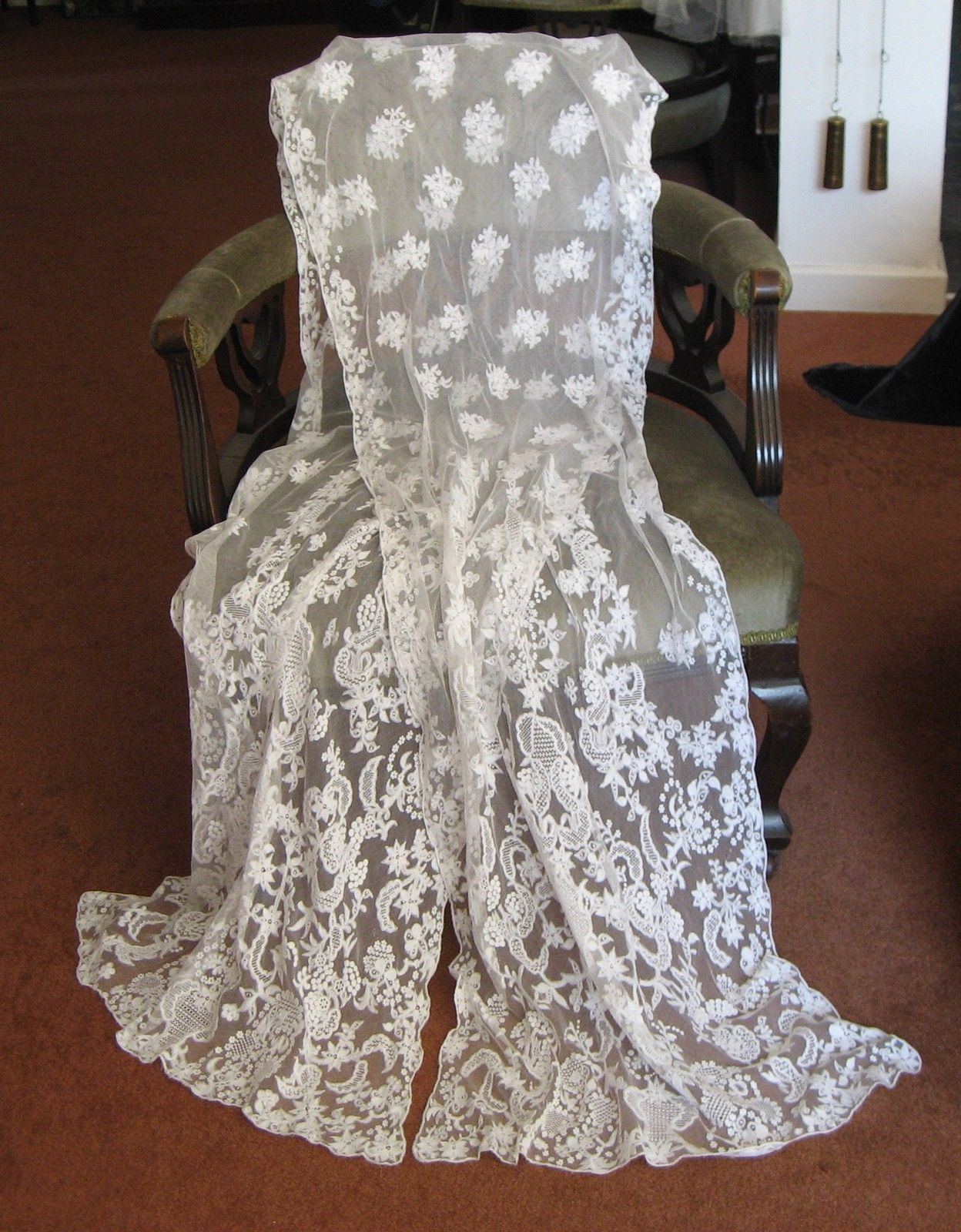 http://tinyurl.com/qeclf5d Handmade Antique Tambour Lace Wedding Veil Heirloom Bride Shawl, Stole
