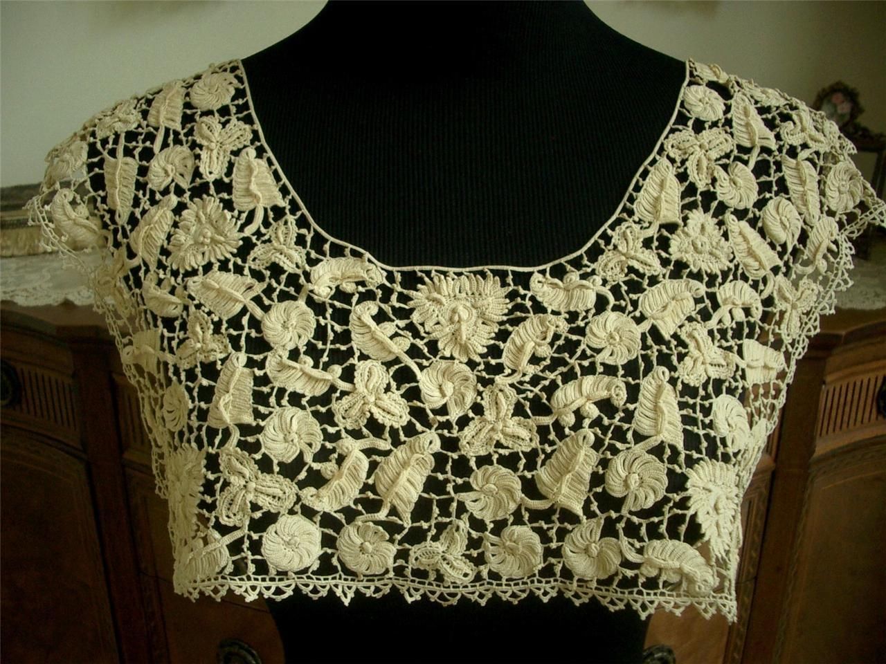 http://tinyurl.com/pgcvd2n very well worked large antique irish crochet clones lace collar
