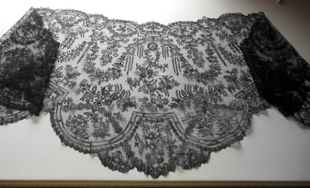 http://tinyurl.com/k8uqoom HANDMADE Antique Vtg BLACK CHANTILLY BOBBIN LACE MOURNING MANTILLA SCARF PANEL