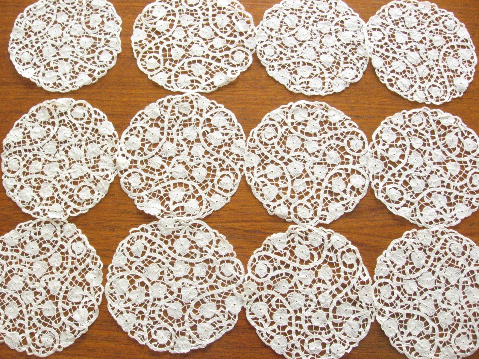 http://tinyurl.com/qgmx4nv BEAUTIFUL Set of 12 Antique Italian CANTU LACE Coasters Goblet Rounds 6″ White