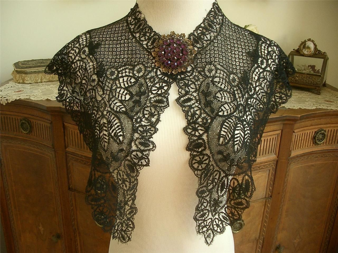 http://tinyurl.com/nbnqna6 LG REFINED HANDMADE Antique Vtg BLACK FRENCH LE PUY BOBBIN LACE SHAWL COLLAR