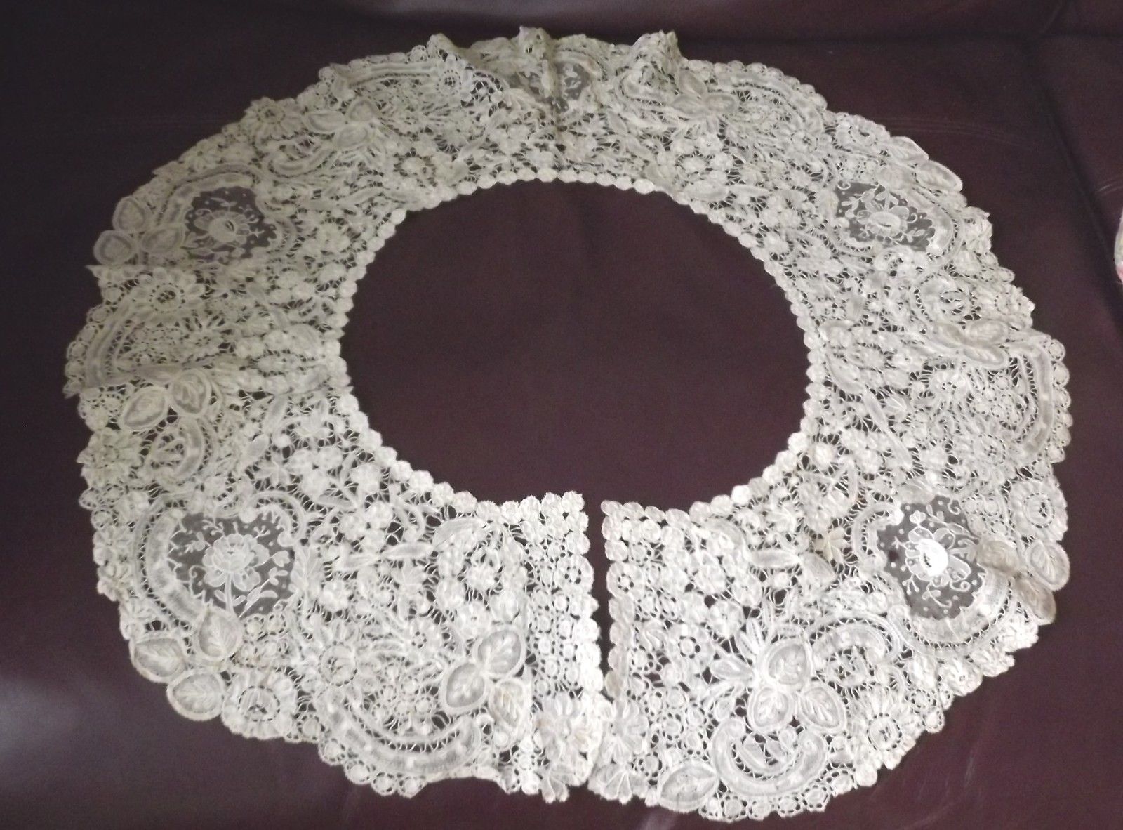 http://tinyurl.com/ok9xorz Intricate Antique Handmade Brussels Guipure Bobbin Lace Collar
