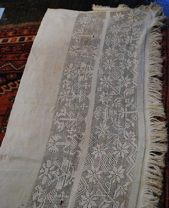 Modifications: Cut at ends, engrelure added. One join. Engrelure at top.