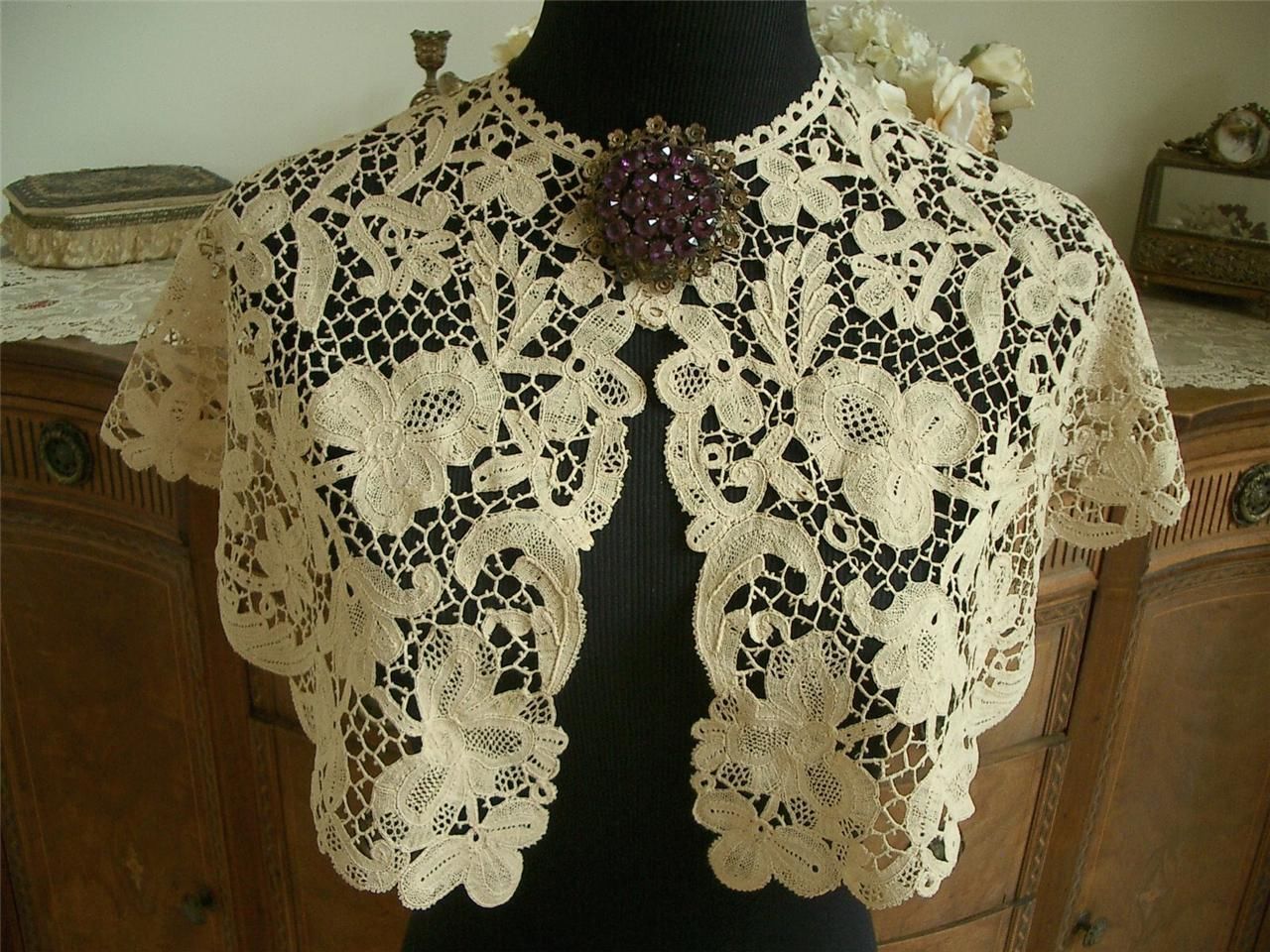 http://tinyurl.com/nj2vsa9 LG HANDMADE Antique Vtg VICTORIAN EDWARDIAN BELGIAN BRUSSELS LACE COLLAR CAPELET