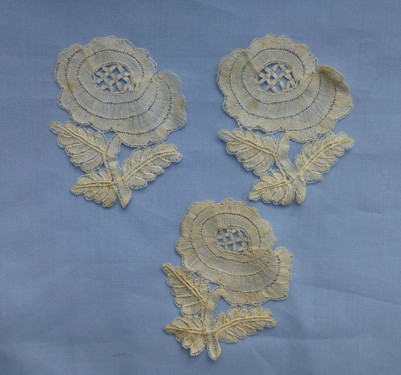 http://tinyurl.com/k96o4k7 3 x Antique Honiton bobbin lace Rose motifs- late 19th Cent. English lace