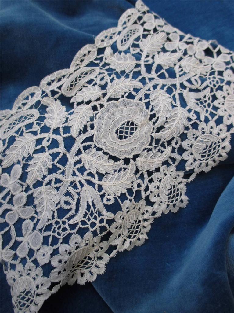 http://tinyurl.com/kbnf4yg LARGE VOLANT DENTELLE APPLICATION D’ANGLETERRE décor de FLEURS-Fin 19è-28/420cm
