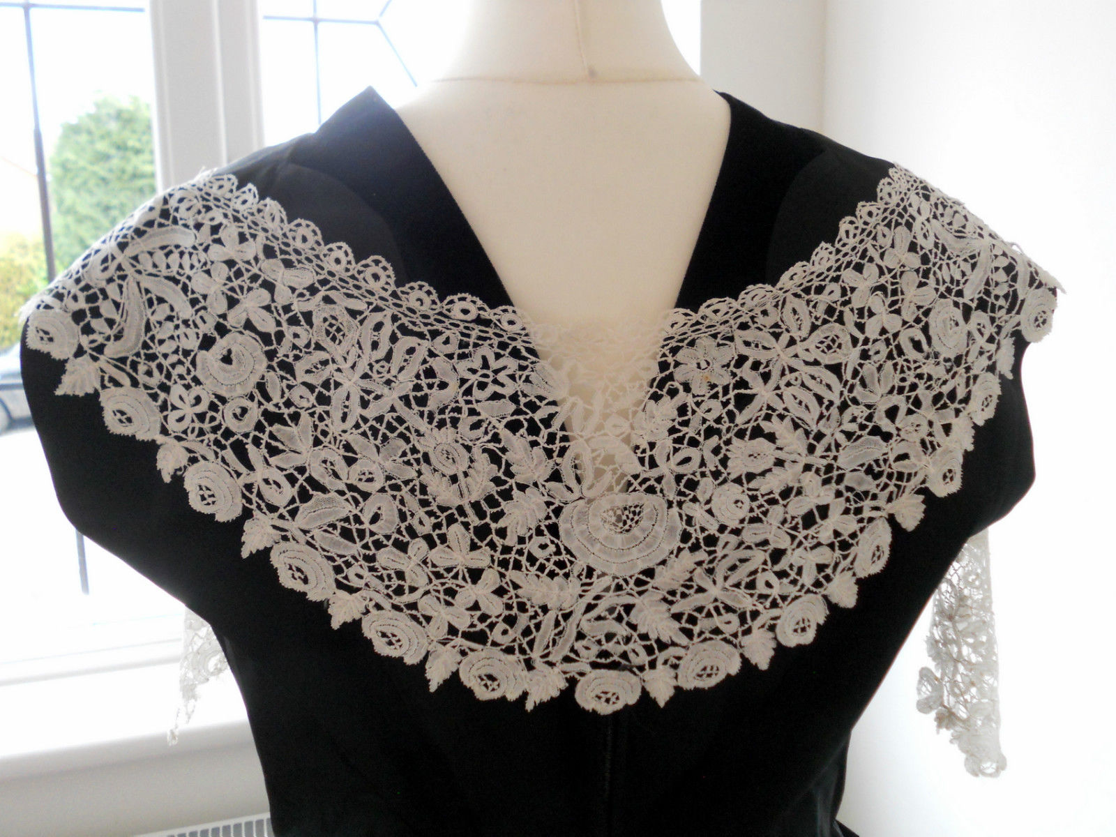 http://tinyurl.com/ozvpj9o ANTIQUE LACE COLLAR IRISH CROCHET WEARABLE HANDMADE LARGE MUSEUM DEACCESSION