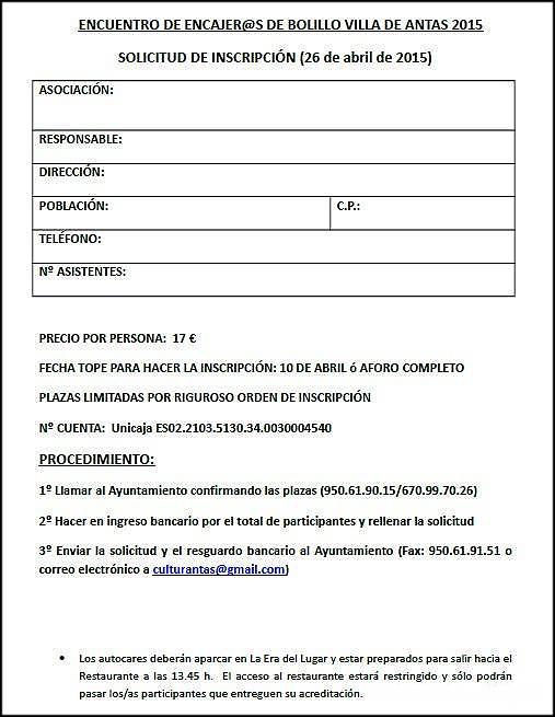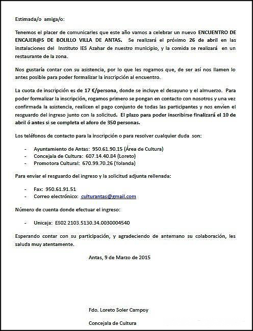 Ayuntamiento de Antas, 950 61 90 15, Concejala de Cultura, 607 14 40 84 (Loreto)