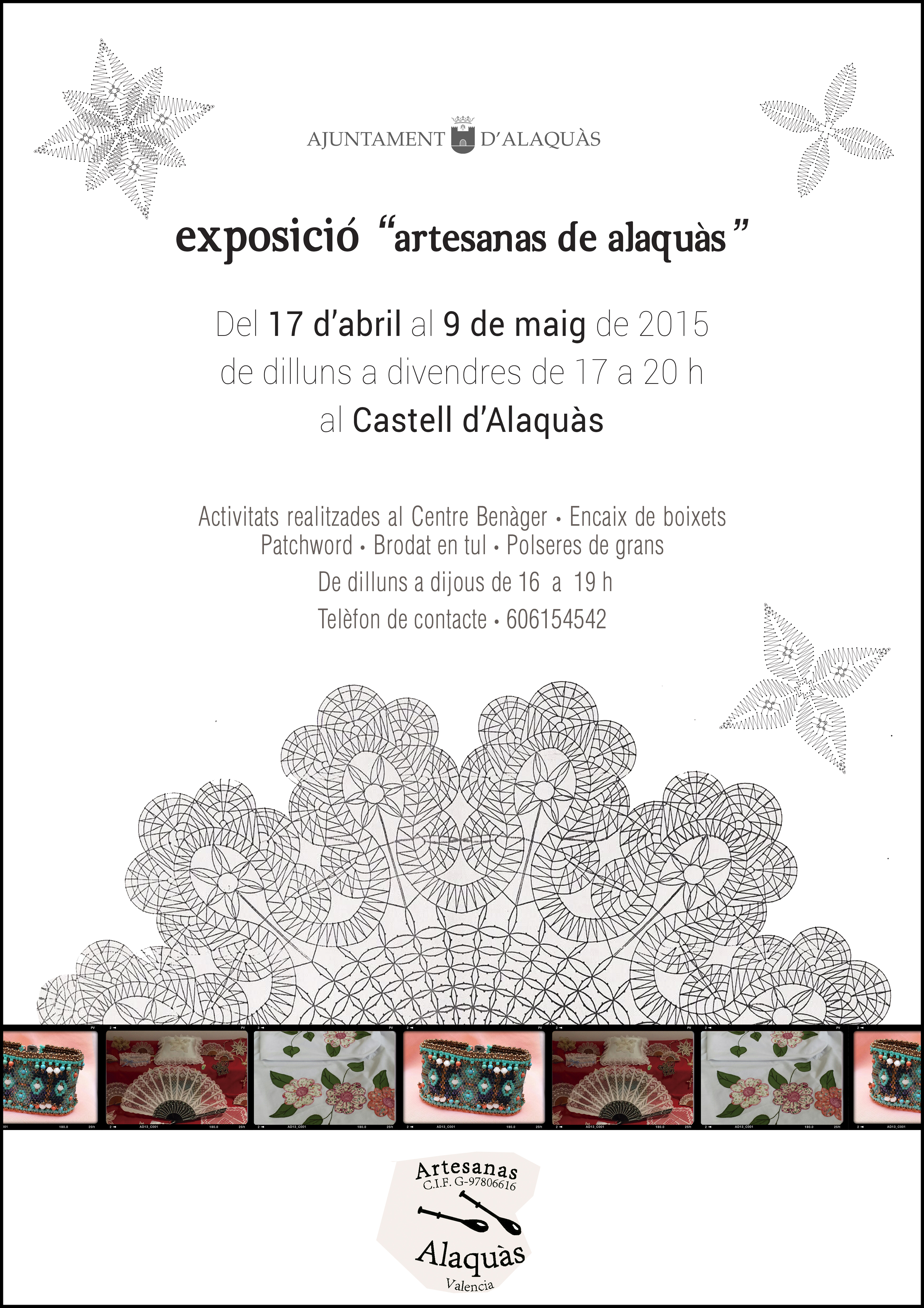 An exhibition of the work of Artisans of Alaquàs will be held from April 17th to May 9th, 2015, including lace, patchwork, embroidery, etc. I belive the Trobada is part of these activities, although they seem to be held in a different location, el Centre Social Benàger, from 16:00 to 19:00.