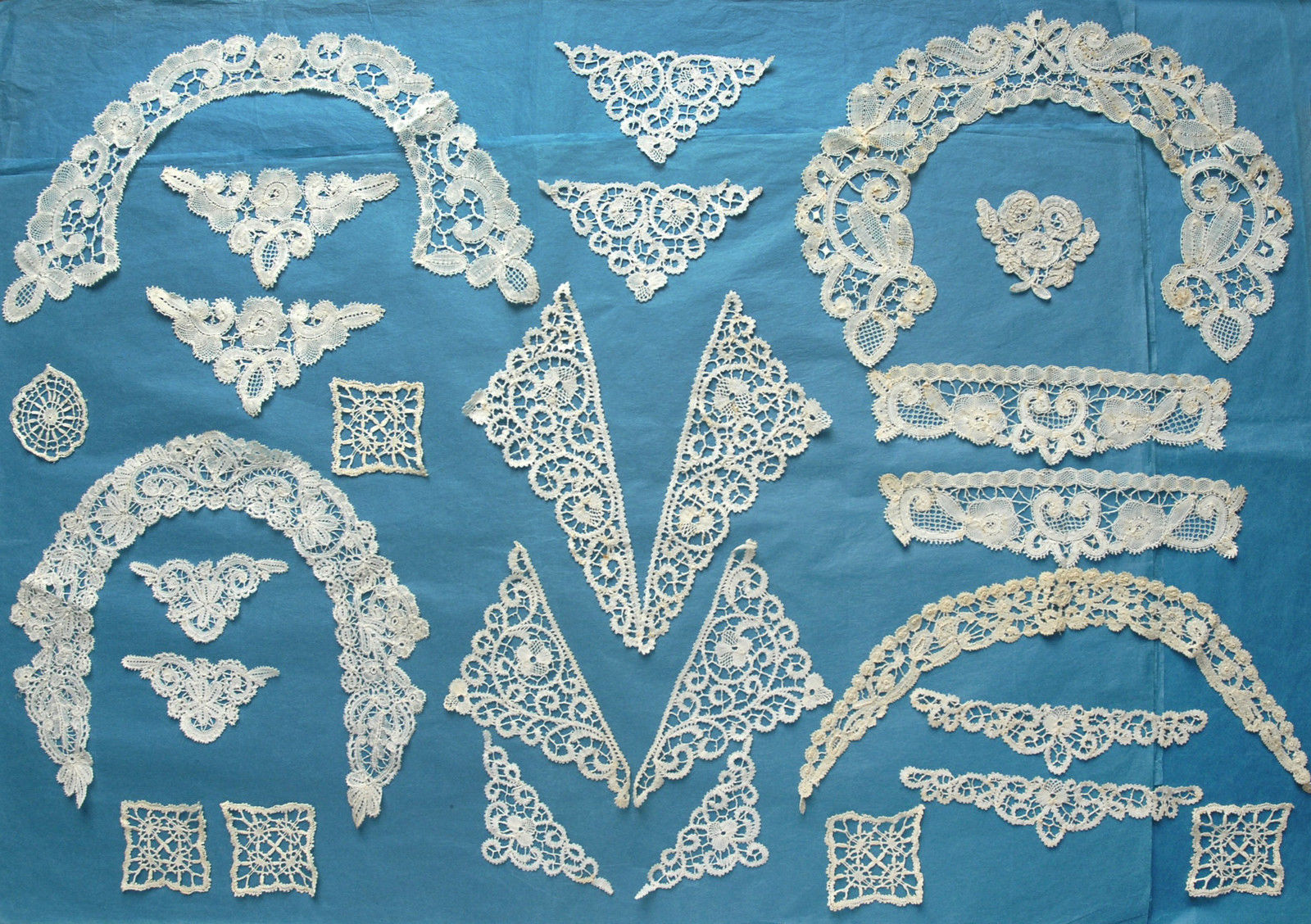 http://tinyurl.com/m6sdjd9 Collection unused antique/vintage Bruges lace collar and motifs – unused