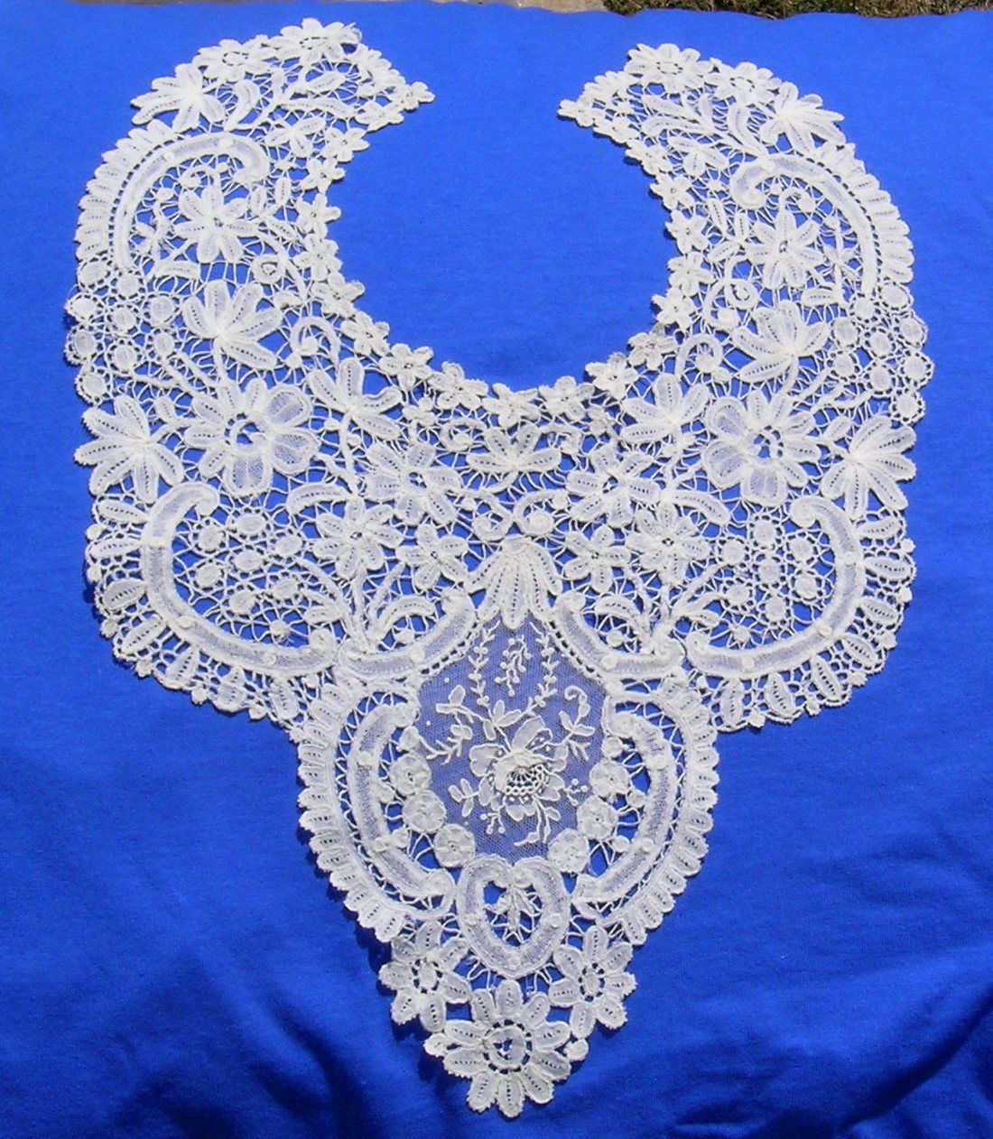 http://tinyurl.com/qyjyzwg Antique Brussels Point de Gaze Duchesse Mixed Lace Collar Plaston