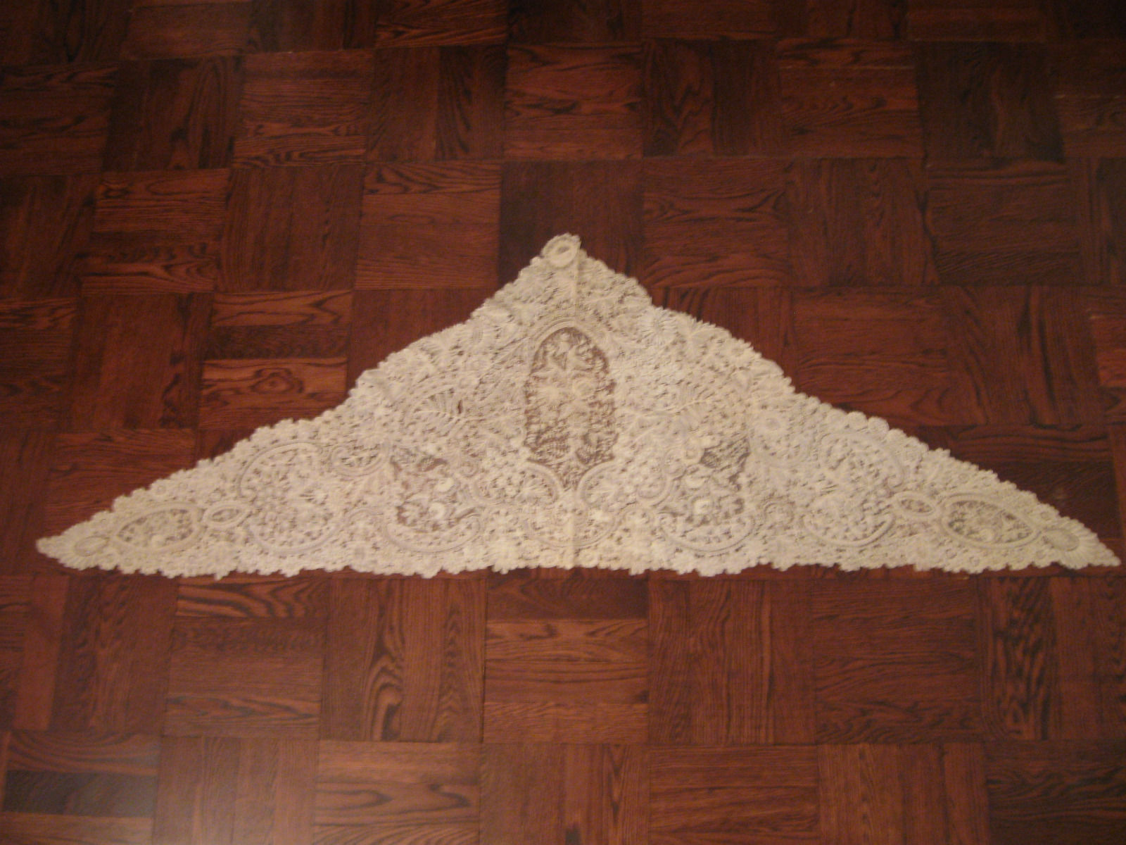 http://tinyurl.com/p69jgux Antique Belgian Lace Triangle – Point de Gaze /Brussels Duchesse, 68″ by 20″