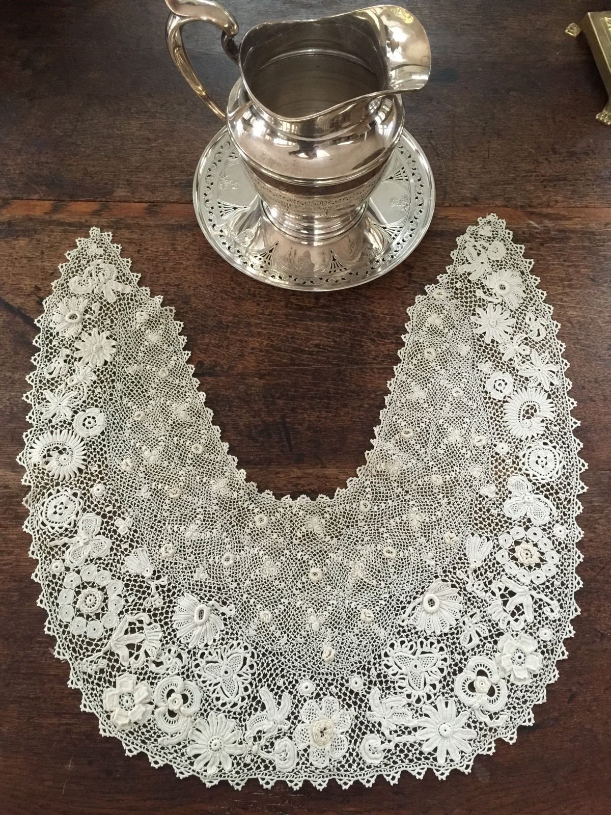 http://tinyurl.com/jesblpf Exquisitely Fine Handcrafted Antique Irish Lace Crochet Collar, Large Circa 1850