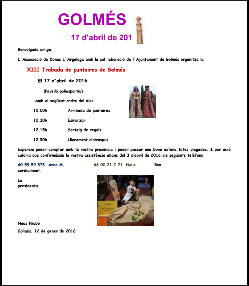 XIII Trobada de Puntaires, Golmés (Lleida, Catalonia)