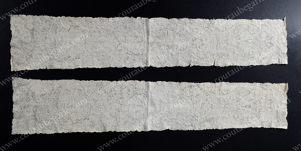 - A rare pair of lappets (formerlyin the collection of Alfred Lescure) of very fine Flemish bobbin lace dating from 1715-25 with a beautiful and dense design.