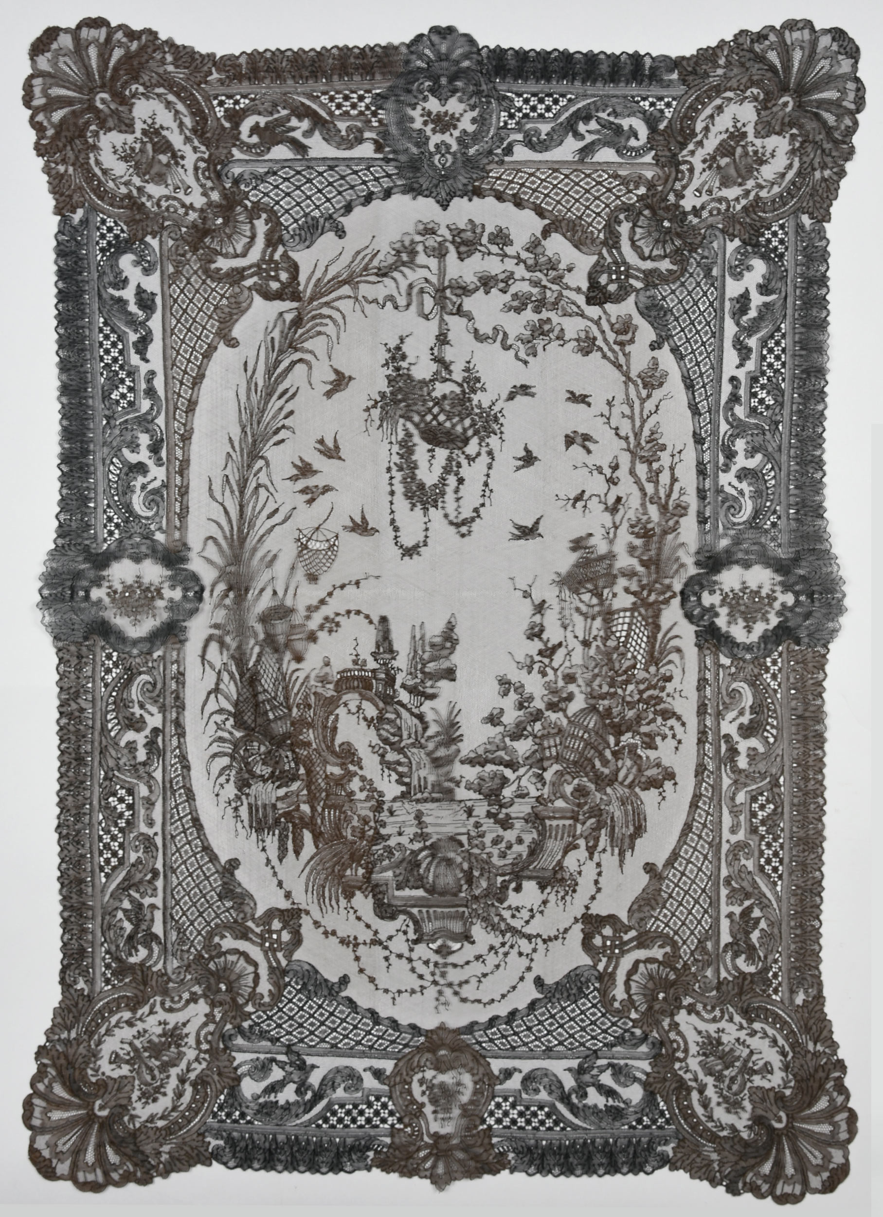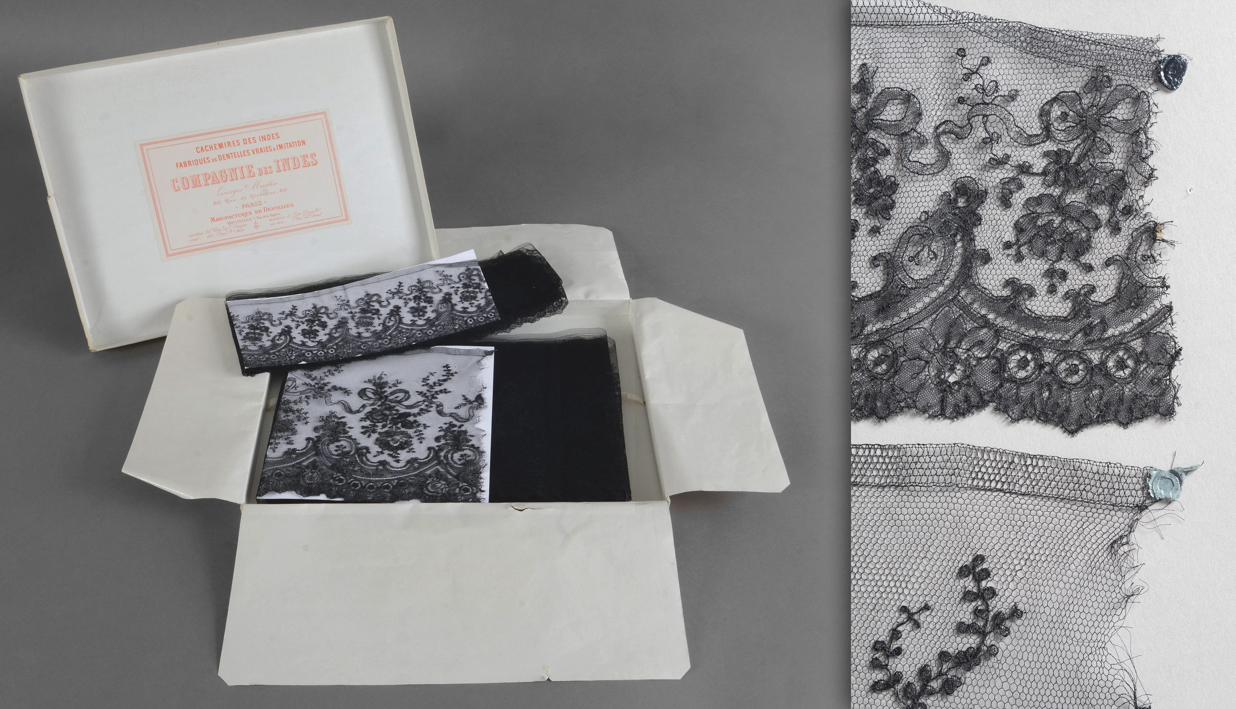 - Some Chantilly items: few shawls, some Chantilly de Bayeux flounces such as a set of beautiful matching flounces with the wax seals and in the original box of Cie des Indes.