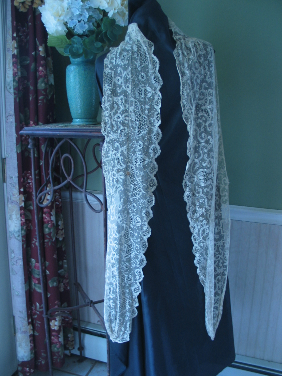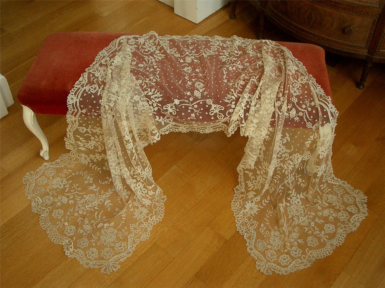 http://tinyurl.com/locn754 ESTATE COLLECTION ANTIQUE BRUSSELS & PT DE GAZE HAND LACE LARGE STOLE/VEIL