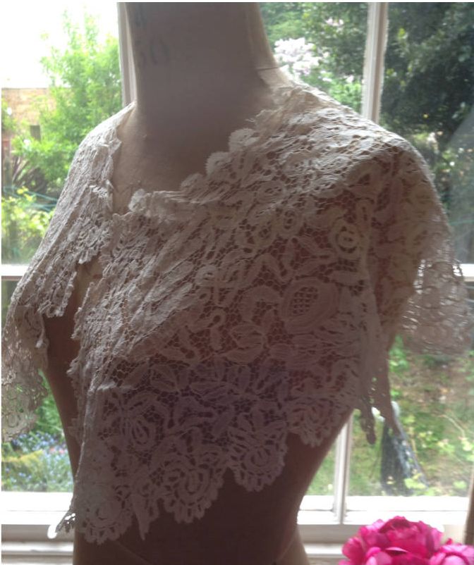 http://tinyurl.com/m57gct5 ESTATE POINT DE GAZE FINE HAND LACE LARGE BERTHA COLLAR