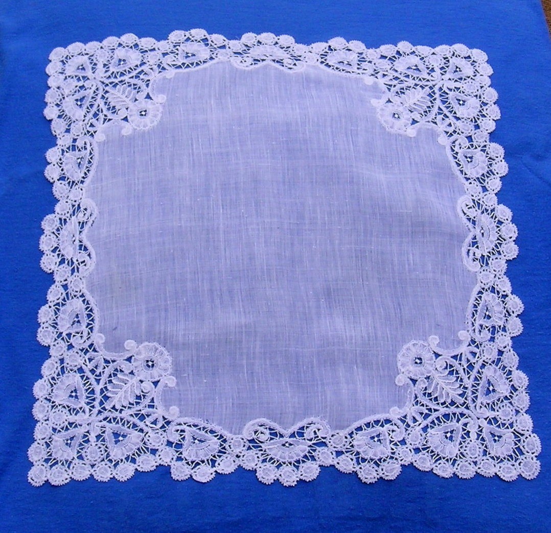 http://tinyurl.com/monoyr7 Beautiful Antique White Brussels Lace Trim Handkerchief/Bridal Hankie