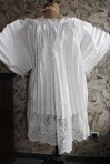 Comments: A Brussels Duchesse dress front of unusual form. The Point de Gaze is confined to three fairly small areas, primarily as decorative fillings. Note the needlelace rings in the centers of the bobbinlace flowers – unusual. Overall it’s a nicely made piece and appears to be in very good condition. Note – lace is not well served by photographing it on such a light ground. Hard to make out the details, and whatever stains might be present are magnified by the lack of contrast.