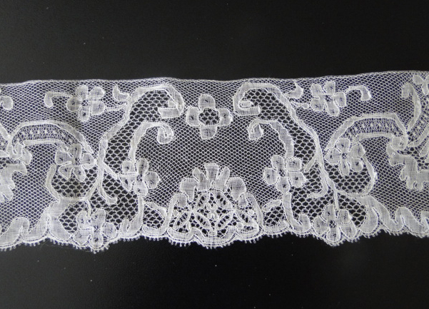 Comments: Three lengths of the same Mechlin pattern. Early 19th century, small flower border with regular sprig ground. Looks soft and delicate. Unfortunately divided in 3 pieces. Overall good condition, few spots, some damage at cut ends.