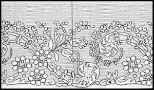 The Autumn, 1956 issue of Embroidery (the English journal of the Embroiderers’ Guild) has an article by Rachel Kay-Shuttleworth on this type of lace. I’m not sure I buy her argument about the similarities of this lace and Hollie point. Click Kay-Shuttleworth to download the article.