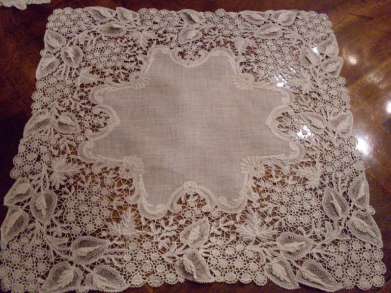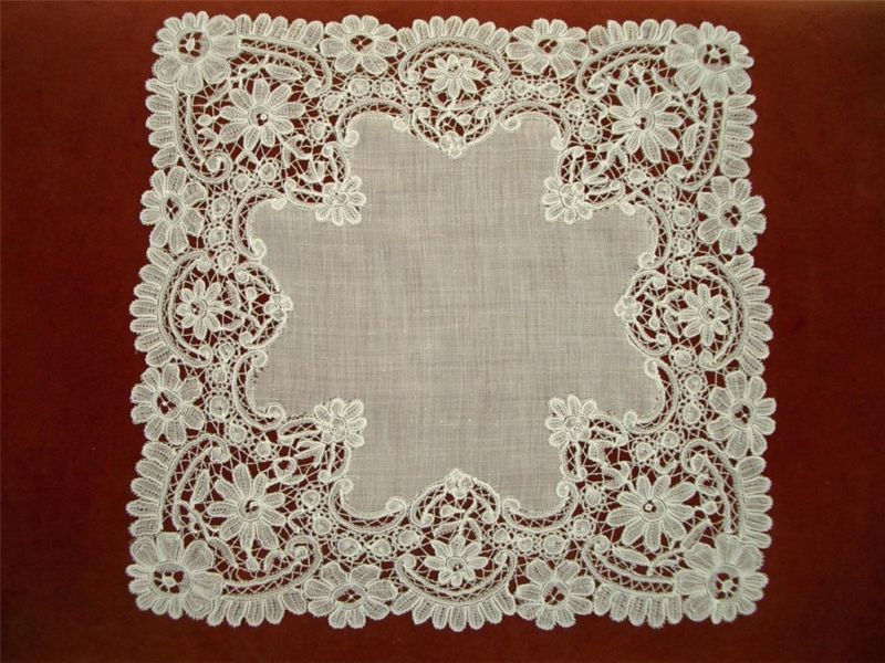 http://tinyurl.com/2ekxn6q Lg Antique Vtg BRUSSELS LACE Handkerchief Hanky Hankie