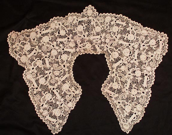 Comments: Nice Carrickmacross guipure collar. Has some needlelace fillings and raised edges, interesting design. Looks in very good condition.