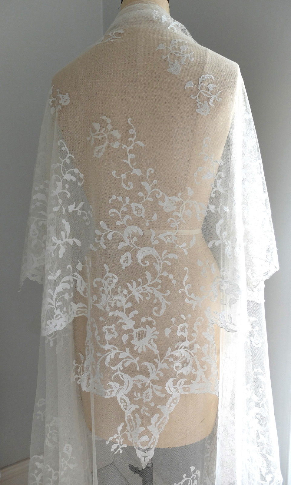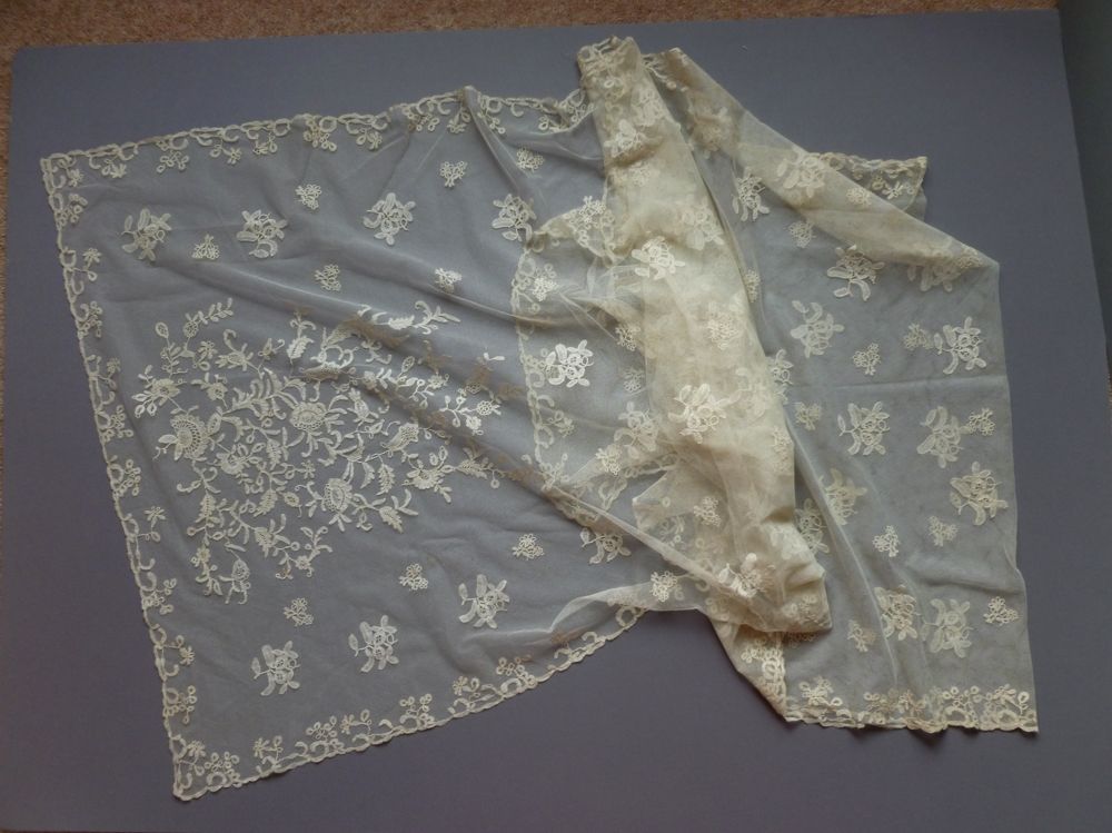 http://tinyurl.com/na2exck A VICTORIAN HAND EMBROIDERED TULLE LIMERICK LACE SQUARE SHAWL, KERCHIEF OR VEIL