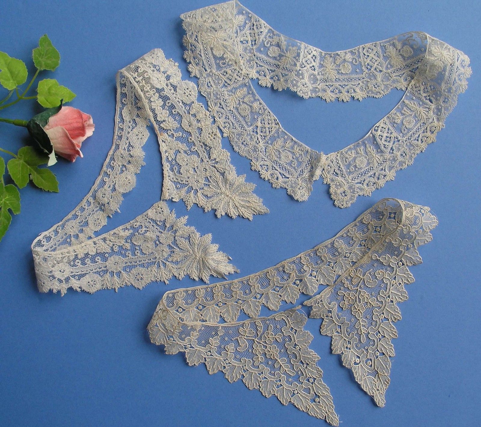 http://tinyurl.com/p3jkgzp 3 Small Delicate Antique Handmade Brussels Point de Gaze Lace Collars VERYNICE!