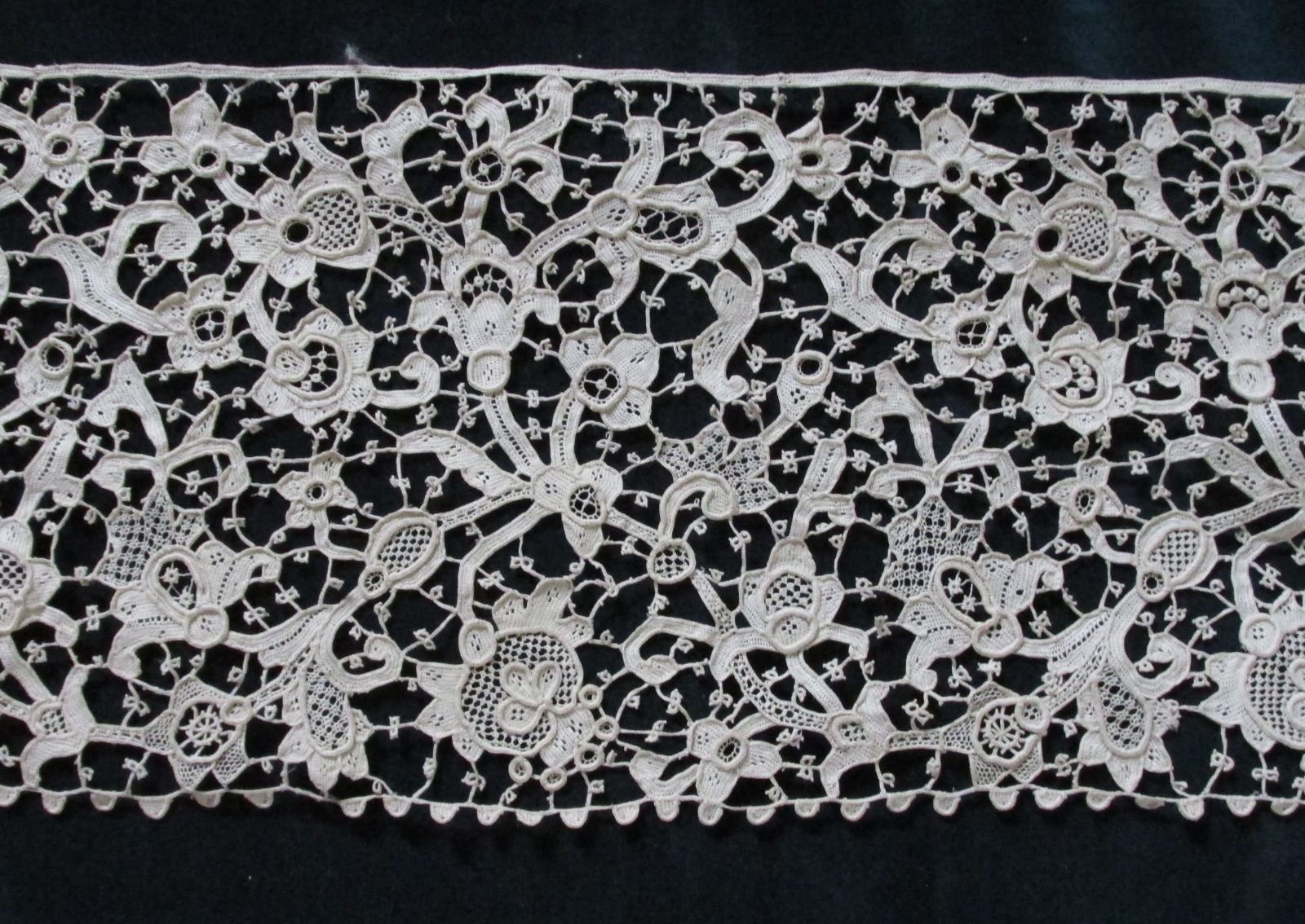 http://tinyurl.com/pjfu84p Fine Antique Handmade Point De Gaze Lace Flouncing – 7-Feet x 6 1/2-Inches