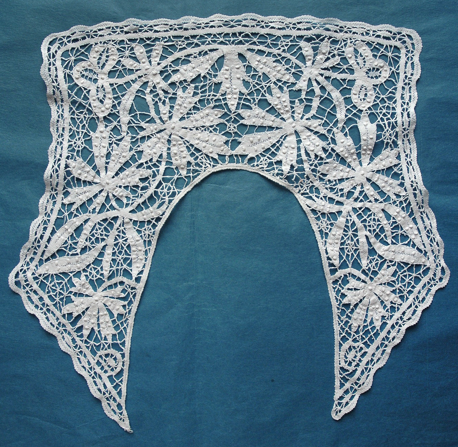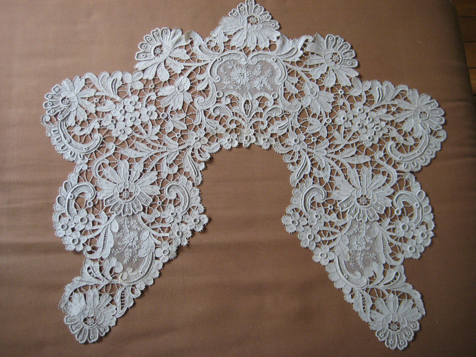 http://tinyurl.com/nmnj4ap ANTIQUE LACE DUCHESSE DE BRUGES 8 1/2″ WIDE COLLAR EXQUISITE RAISED WORK